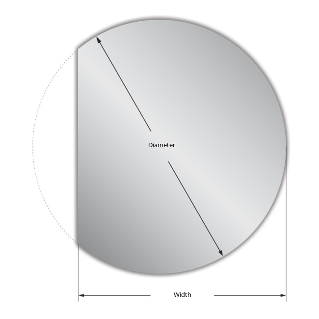The dimensions of the mirror are determined by two parameters: Diameter and Width. The diameter is the diameter of the original round mirror from which the Moon mirror is "cut". If the Width is equal to half of the Diameter, the mirror will have the shape of half a circle.
