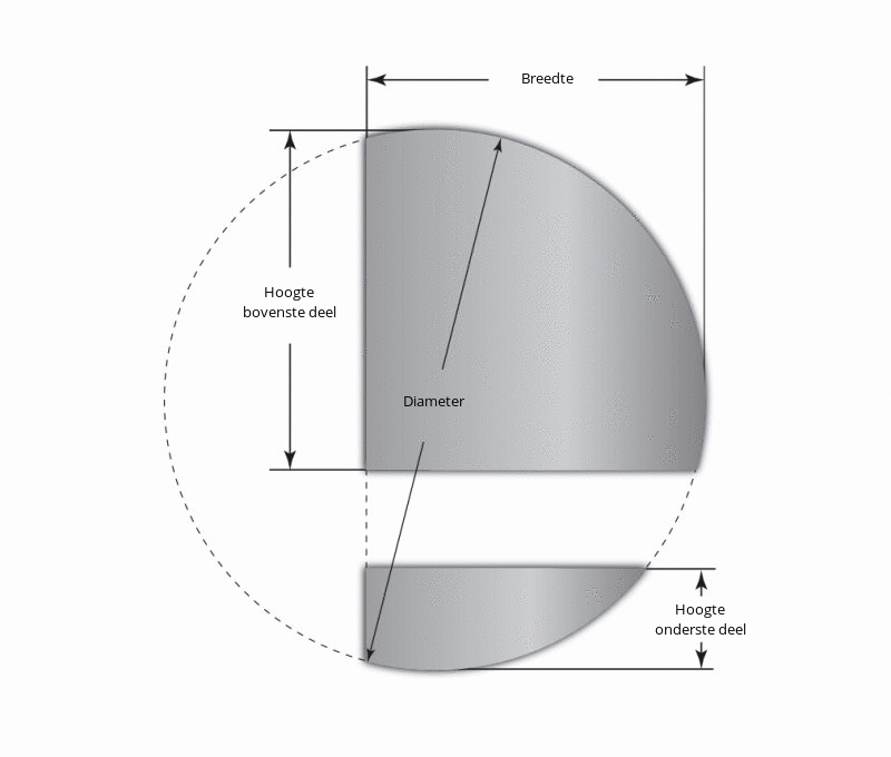De ronde zijde van de spiegel is aan de linkerkant en het vlakke gedeelte zit aan de rechterkant van de spiegel. afbeelding