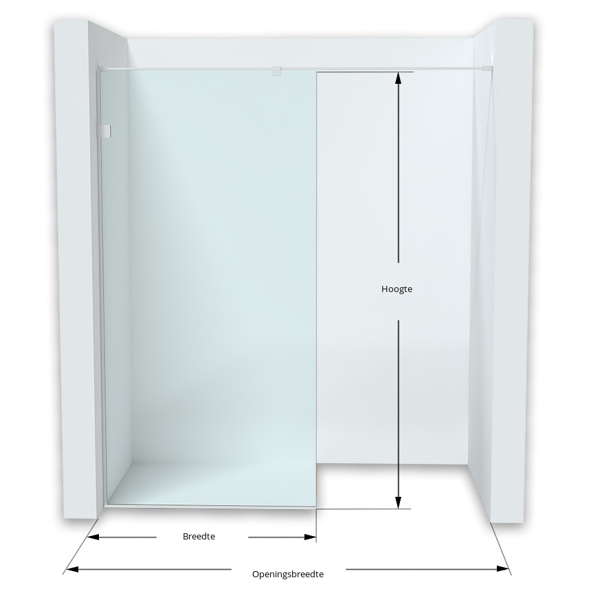 + 20 €Gedeeltelijk Privacy glas. In dit geval wordt het glas gedeeltelijk (midden) gematteerd. Gematteerd deel heeft een hoogte van 100 cm en bevindt zich in het midden. Binnenzijde heeft nog steeds Anti kalk coating.